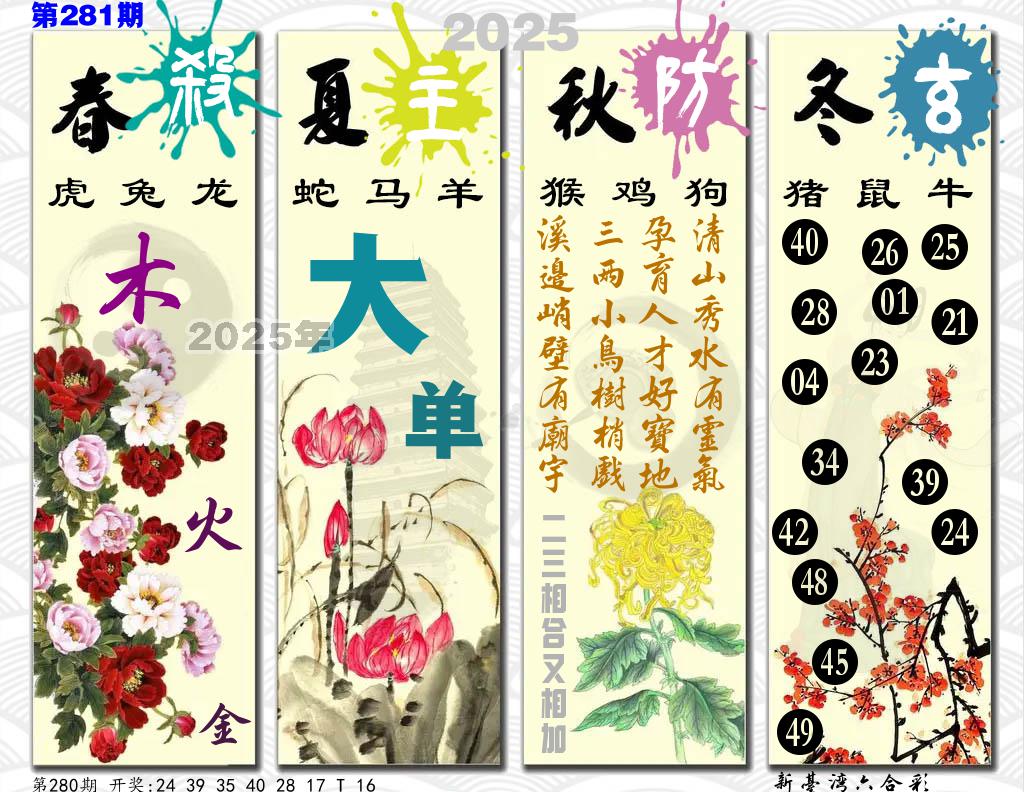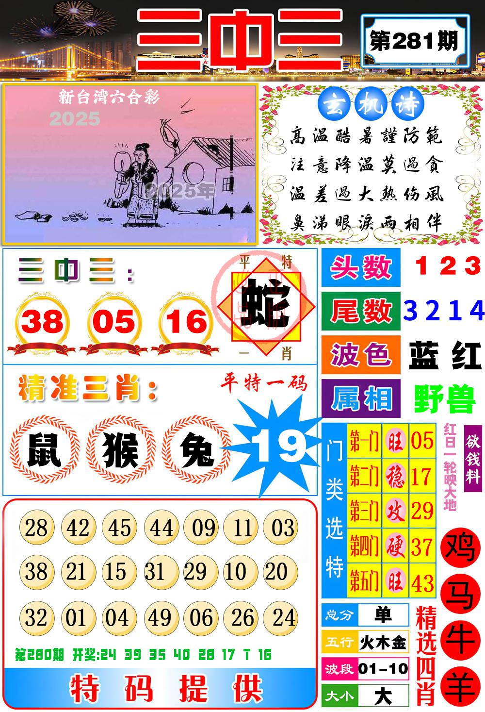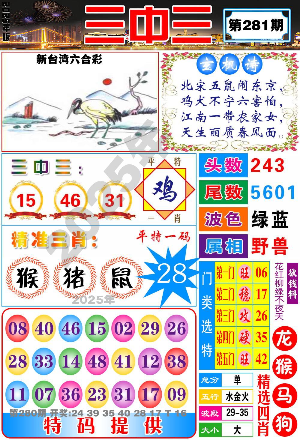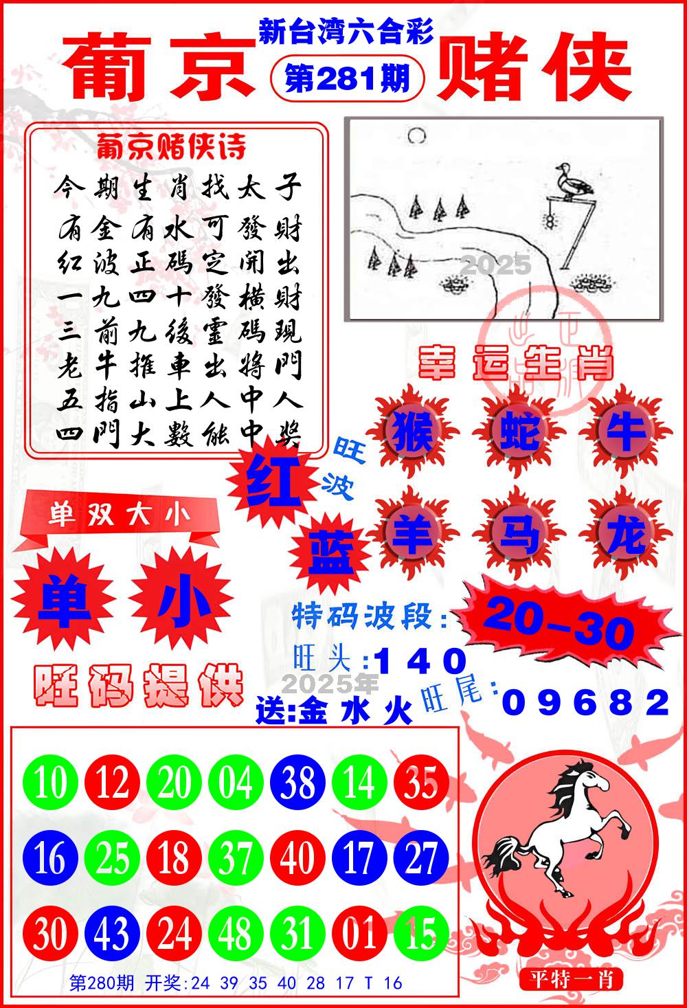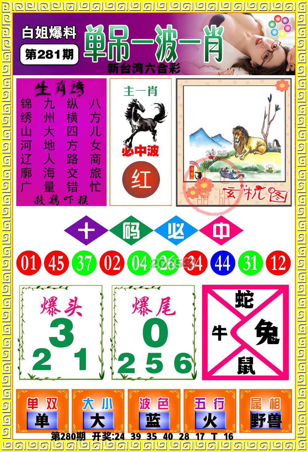 2025281期:九肖 | 羊鸡兔蛇狗牛虎猪龙 | 开:???? |